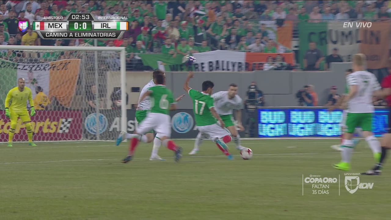 Primera oportunidad del Tri tras una buena jugada que armó el Tecatito.