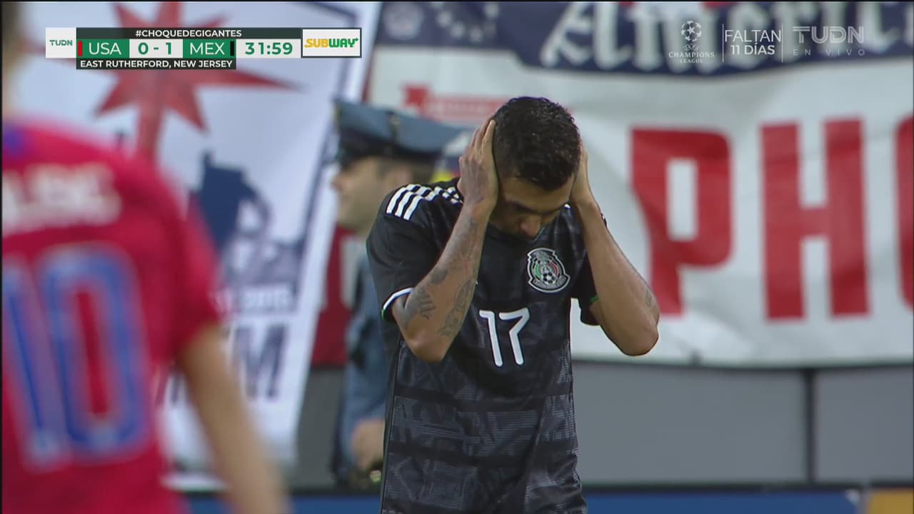 Carlos Rodríguez robó el balón, dribló, cedió a Corona, quien erró a la entrada del área al 32’.