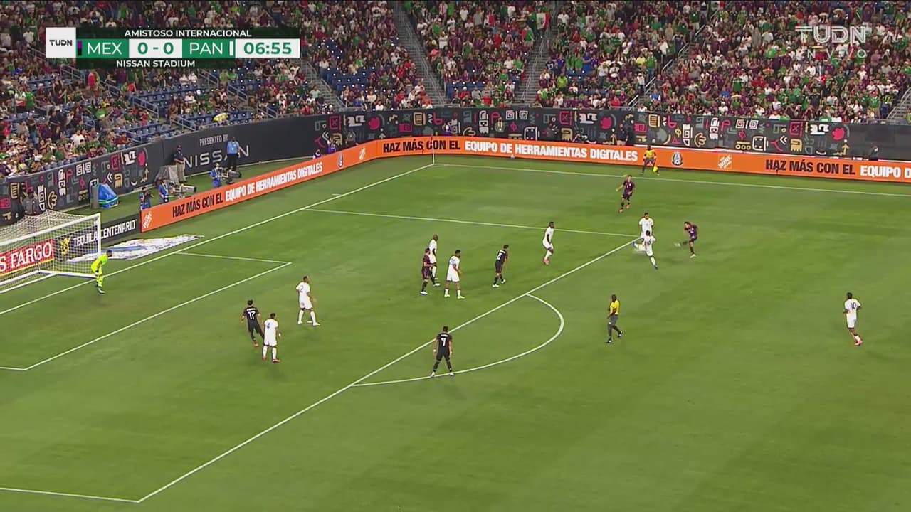 El delantero del Tri hizo el movimiento hacía dentro del campo para disparar de zurda al 7’, pero fue a un costado.