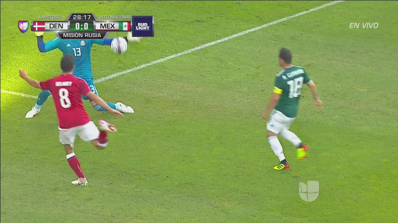 Los errores en la salida del Tri siguen siendo un dolor de cabeza y se reflejó en el primer tiempo. Héctor Moreno intentó salir con balón controlado, se enredó con la pelota, la perdió, pero Dinamarca no supo aprovecharla en una clara llegada.
