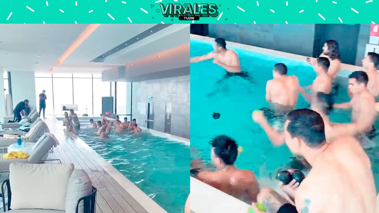Los jugadores del Tri se divierten en la alberca con 'guerra' de pelotazos