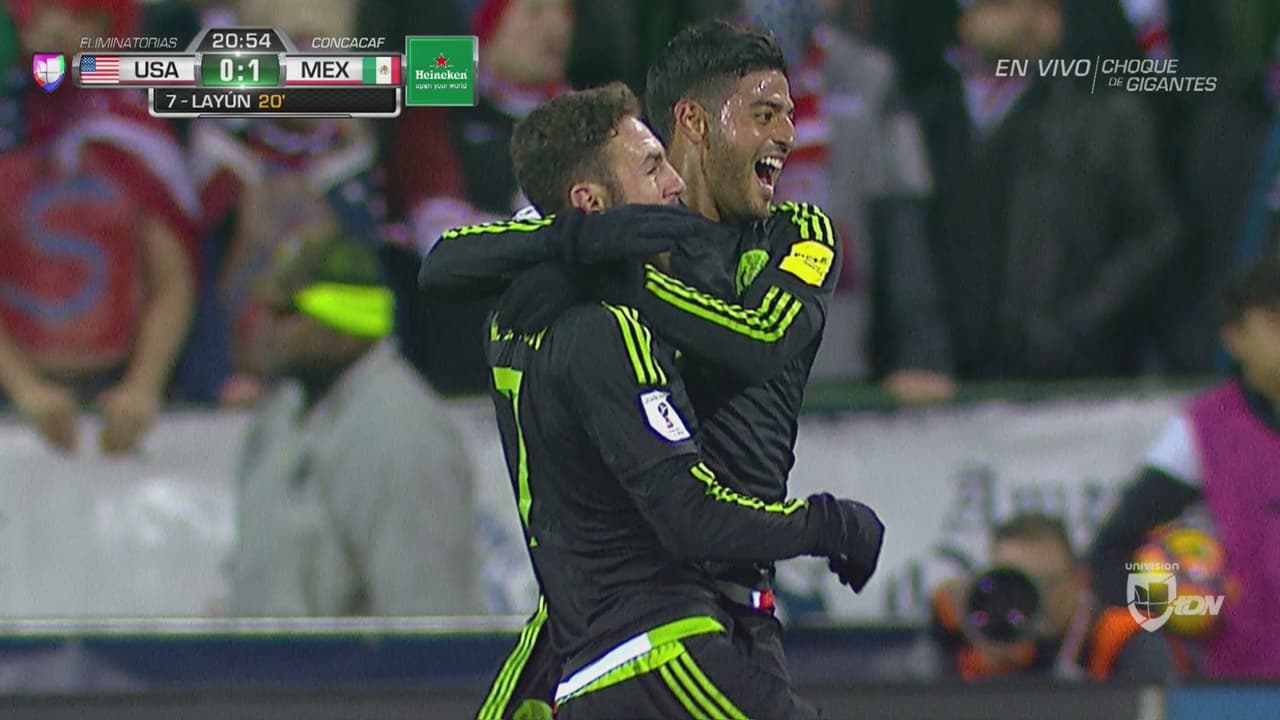 Layún probó desde afuera del área, hubo un pequeño desvío y Tim Howard no llegó a sacarla. Fue una mala salida de Estados Unidos que ‘Gio’ dos Santos peleó muy bien.