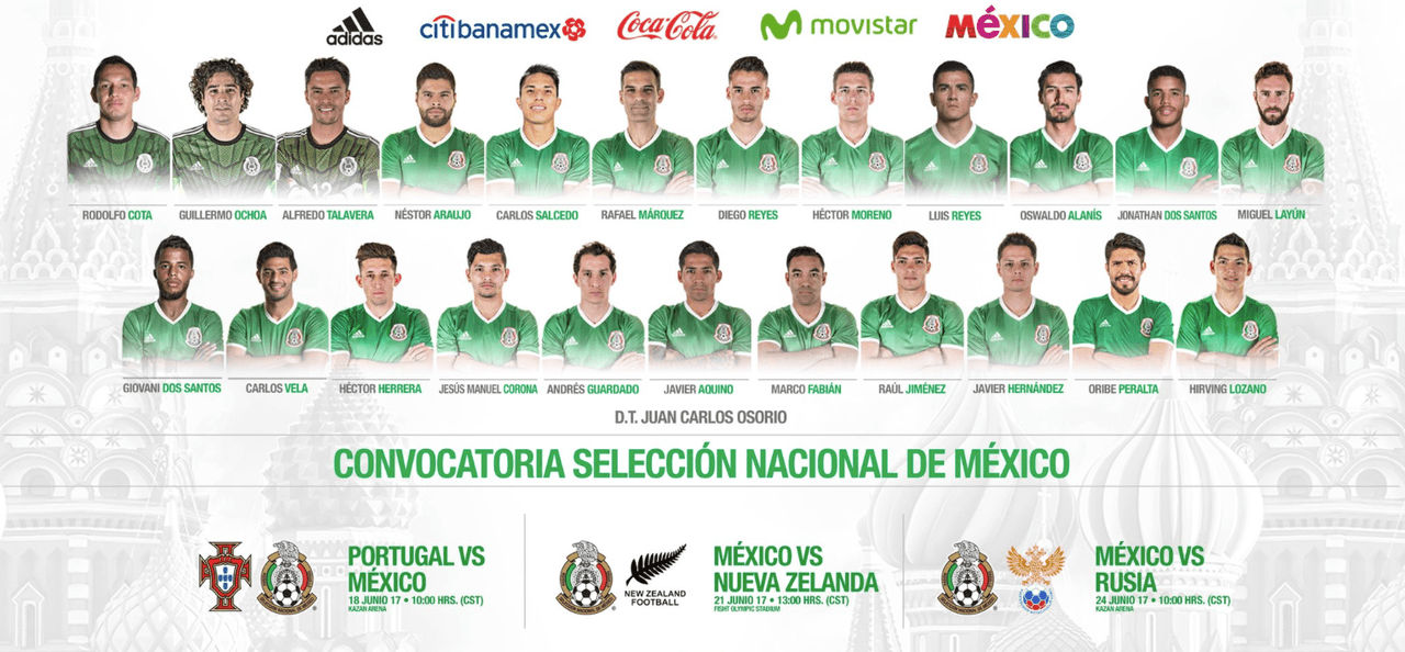 México ya tiene listos a sus 23 elementos para la Copa Confederaciones de Rusia 2017.