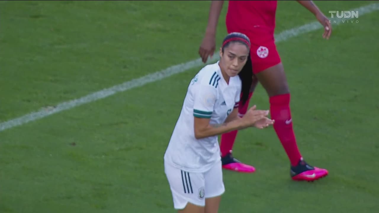 Al 18’, Lizbeth Ovalle hizo un gran jugada por la banda izquierda donde desbordó y mandó centro para que apareciera dentro del área Renae Cuellar, quien se desmarcó bien de la zaga canadiense, pero no pudo conectar el esférico de forma adecuada y pasó a un costado del marco rival.