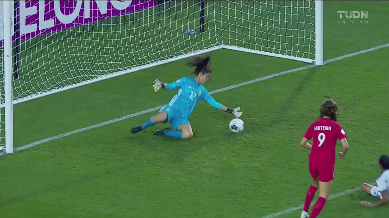 La insistencia premió a Canadá y logró irse a los vestidores con una ventaja de dos goles gracias un disparo de Shelina Zardorsky, que no parecía ir con mucha potencia, pero que ante la multitud dentro del área, Alvarado se fintó y no reaccionó a tiempo para desviar el peligro.