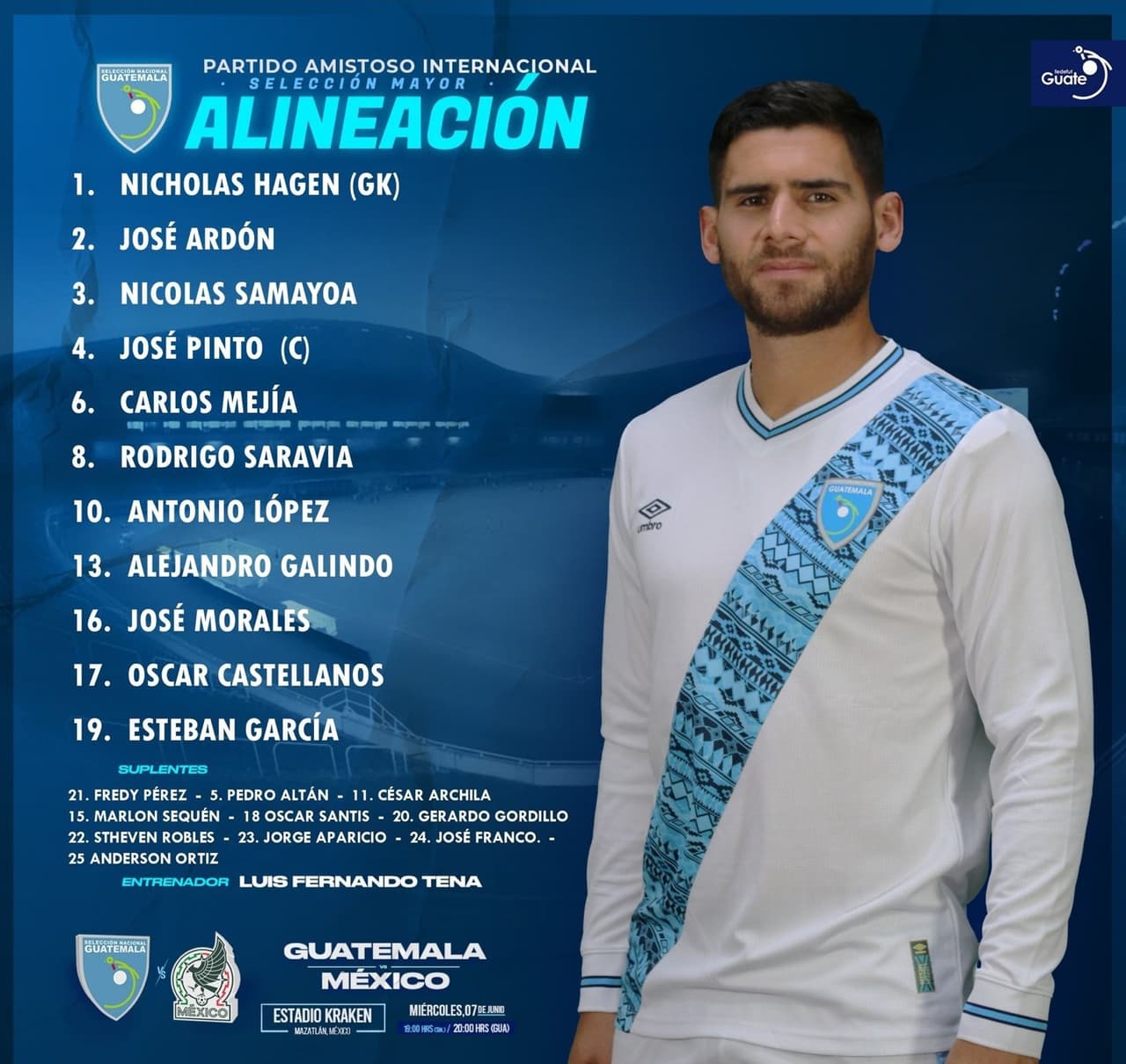 El conjunto 'chapín' por su parte está bajo la dirección técnica de un viejo conocido: Luis Fernando Tena, un estratega de buenos recuerdos en la afición mexicana al ser quien llevó a la Selección Mexicana a la medalla de oro en Londres 2012.