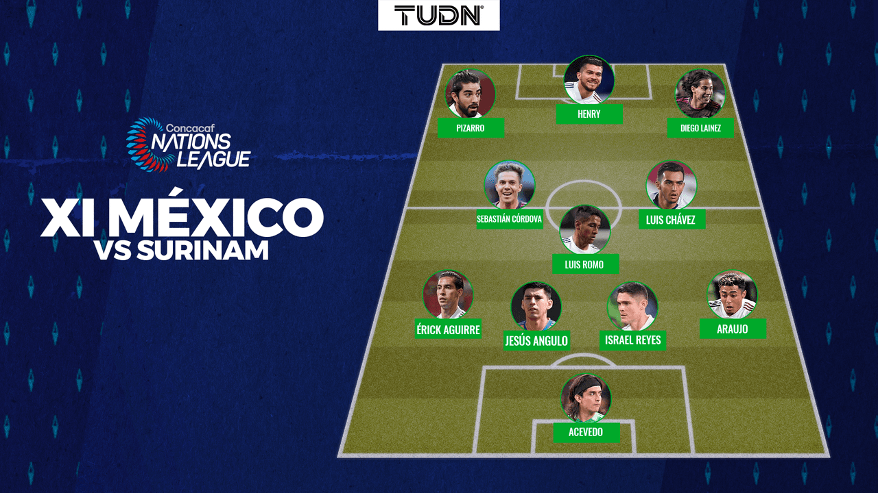 En la alineación que perfila la selección mexicana destaca la titularidad de Carlos Acevedo, Julián Araujo y Diego Lainez, así como las ausencias de Marcelo Flores y Orbelín Pineda, quien quedaría fuera del XI para incluir a Rodolfo Pizarro.