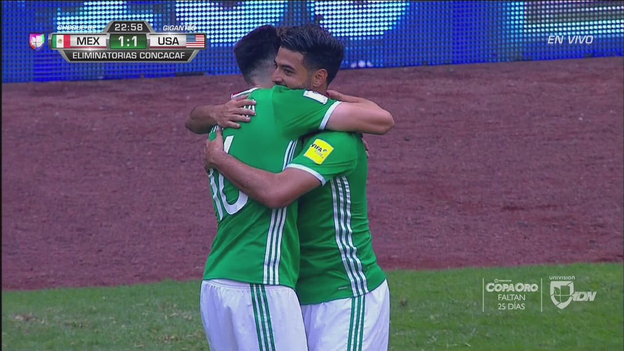 Pero México le dio una sopa de su propia medicina a sus vecinos del norte: aprovechó la velocidad de sus atacantes y la precisión de sus toques, 'Chicharito' tocó a Carlos Vela, quien cambió el ritmo, le quitó un par de revoluciones a la jugada, llevó el balón a la media luna y colocó un zurdazo pegado a la base del poste para empatar el partido y hacer estallar a un nervioso Estadio Azteca.