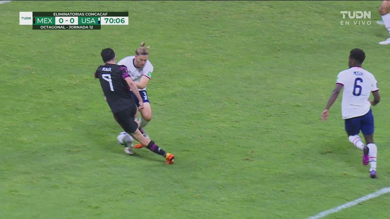 Lozano interceptó el esférico, cedió para Raúl, quien encaró al central, pero perdió en el mano a mano.