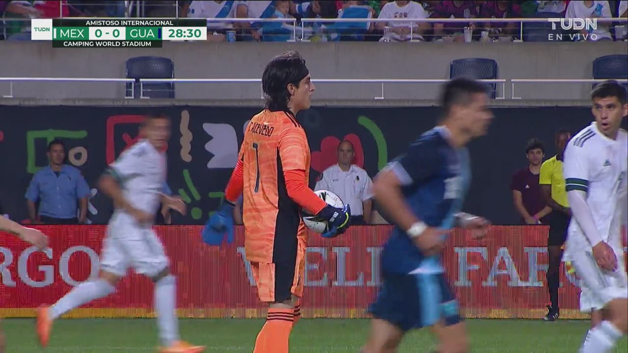 Servicio a segundo poste y el delantero se la entrega fácil al portero mexicano, al minuto 29.
