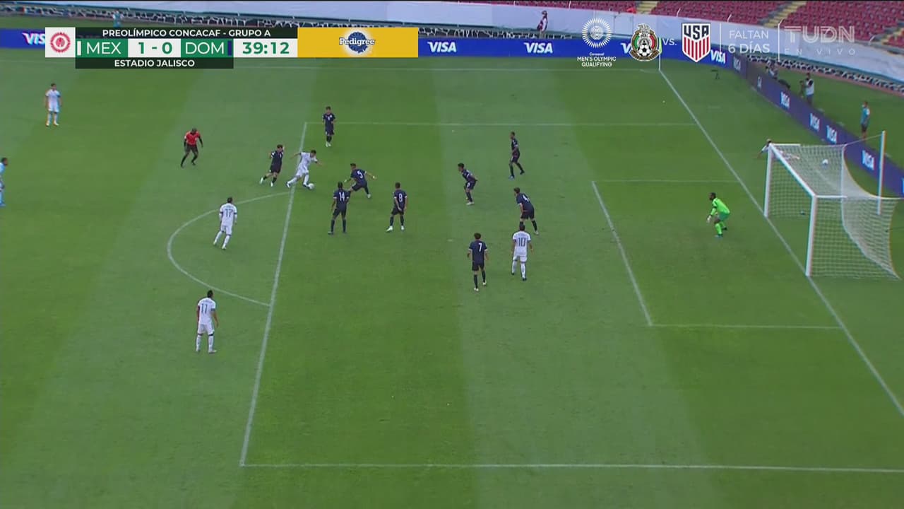El mediocampista realizó un amague en la frontera del área y deja pasar la oportunidad, al 39’.
