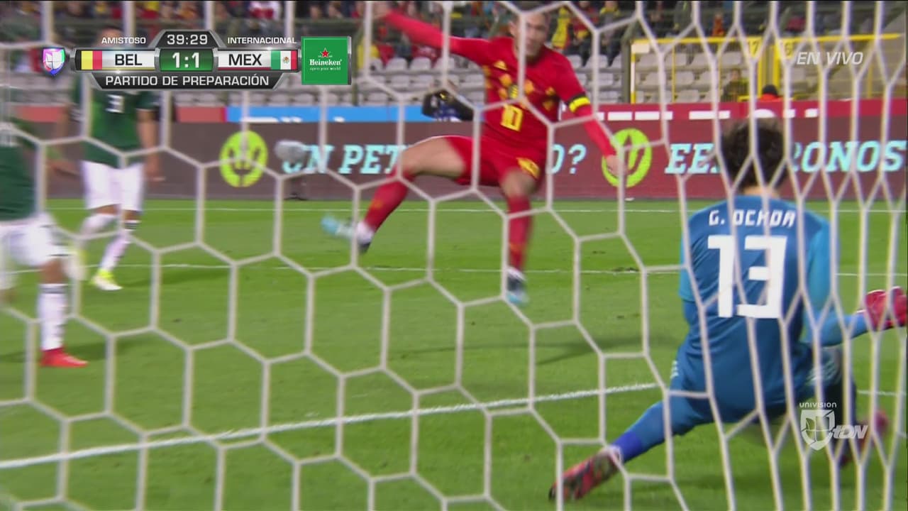 Otra desatención en la defensa mexicano que Eden estuvo a punto de convertir, pero el portero mexicano rechazó de gran forma.