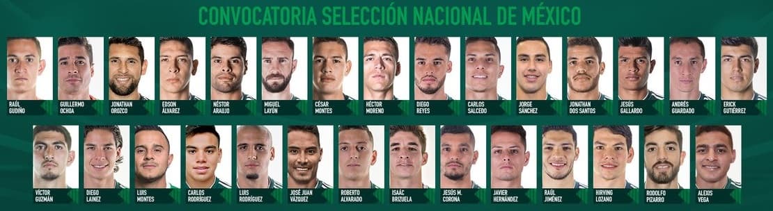 El resto del conjunto está conformado, en su mayoría, por futbolistas de la Liga MX, teniendo como protagonistas a Luis Montes y José Juan Vázquez, quienes vuelven a ser llamados. El equipo que más elementos aporta es Monterrey, con cinco.