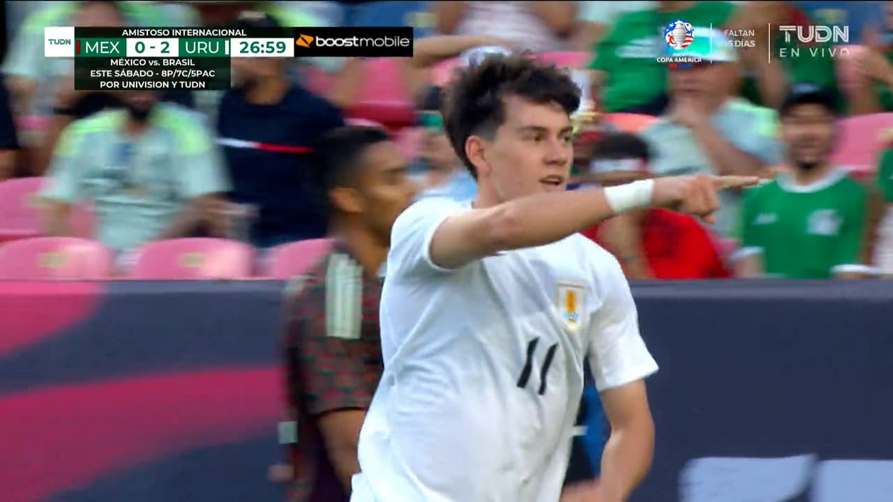 Otra vez por la derecha... Pellistri apareció solo y firmó el 0-2 sobre México