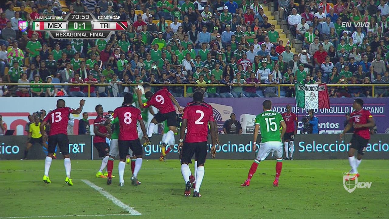 Mano de Trinidad y Tobago dentro del área que el silbante no concede.