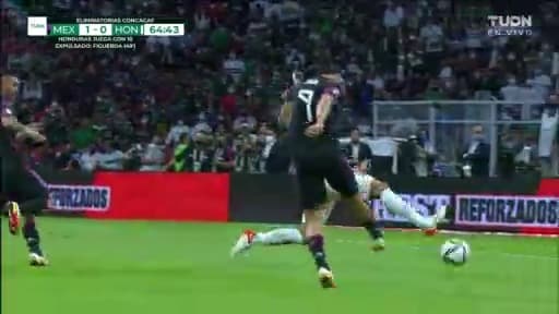 El delantero del Tri se tuvo confianza y buscó poner el balón cerca del poste a los 64 minutos.