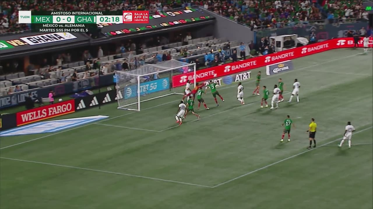 En cobro de tiro de esquina, Kudus la manda al corazón del área donde el guardameta mexicano le mete par de puños.