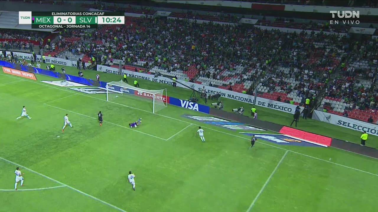 Jorge Sánchez filtró para jugador del Cruz Azul, quien metió centro caliente, pero el arquero tapó.