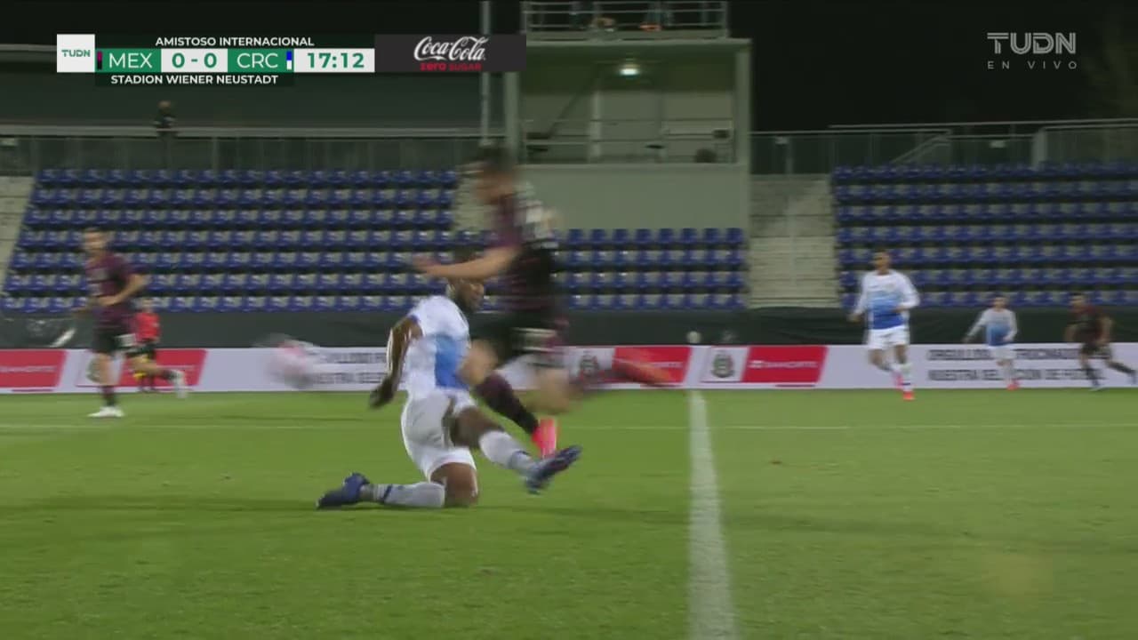 El jugador de Costa Rica no llegó a tiempo a la barrida y se terminó llevando a Hirving Lozano al 17’.