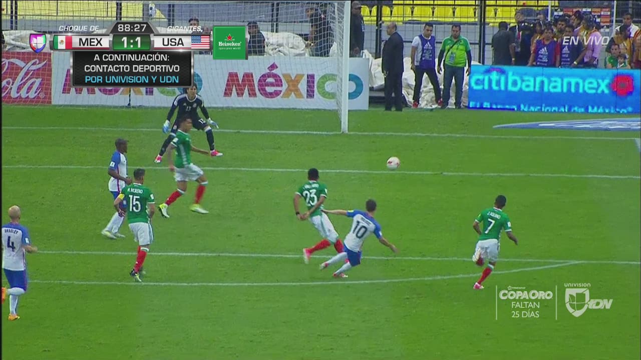 El joven delantero de Estados Unidos se quitó a Héctor Moreno afuera del área, pero no logró colocar bien su disparo y lo mandó desviado, en los minutos finales del partido.