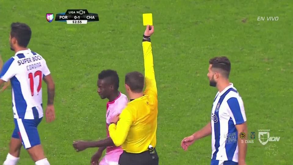 Tarjeta amarilla. El árbitro amonesta a Alioune Fall de Chaves on December 19, 2016