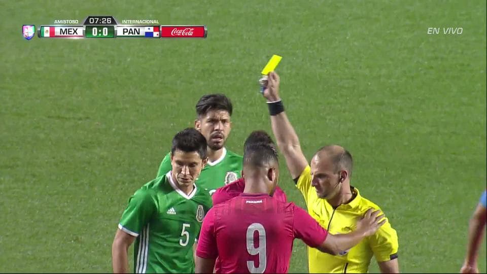 Tarjeta amarilla. El árbitro amonesta a Amílcar Henríquez Espinoza de Panamá