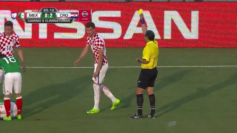 Tarjeta amarilla. El árbitro amonesta a Borna Barisic de Croatia on May 27, 2017