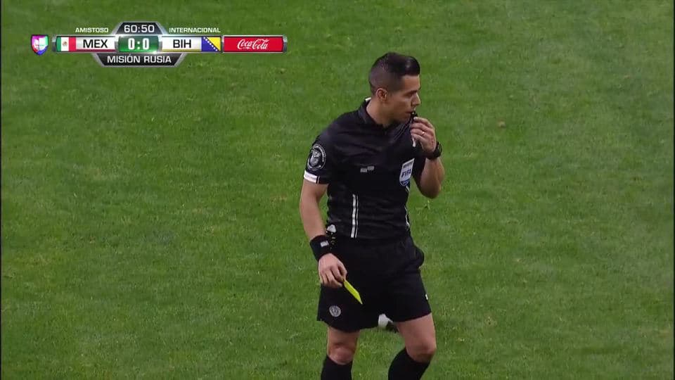 Tarjeta amarilla. El árbitro amonesta a Dino Besirovic de Bosnia and Herzegovina on January 31, 2018