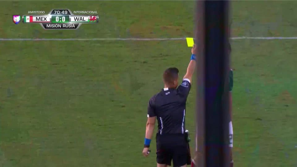 Tarjeta amarilla. El árbitro amonesta a Erick Gutiérrez de Mexico on May 28, 2018