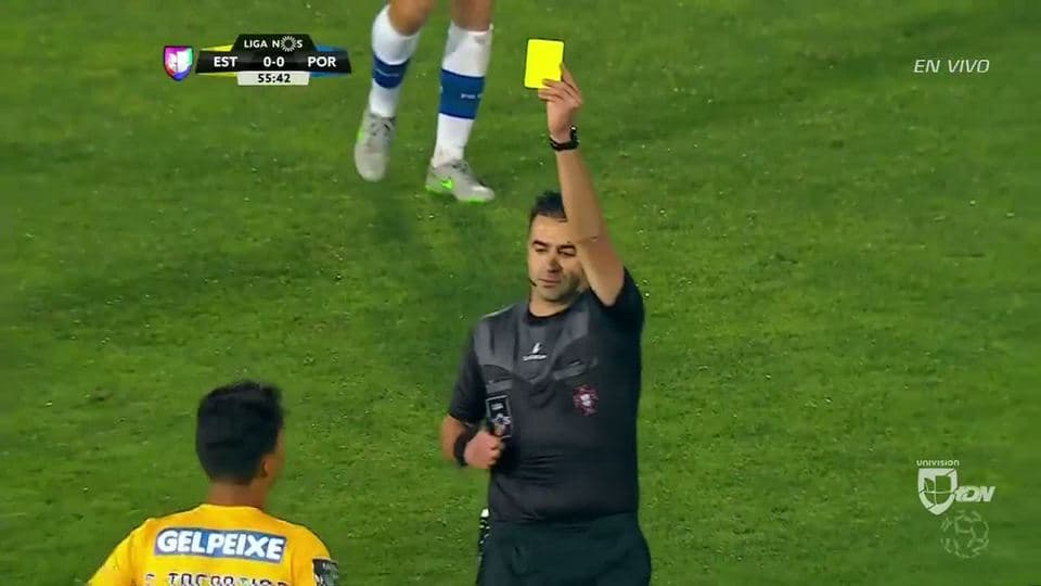 Tarjeta amarilla. El árbitro amonesta a Gustavo Henrique Barbosa Freire de Estoril