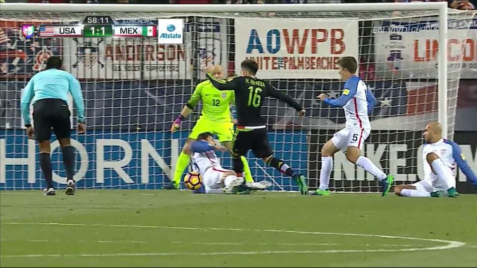 Tarjeta amarilla. El árbitro amonesta a Héctor Miguel Herrera López de México on November 11, 2016