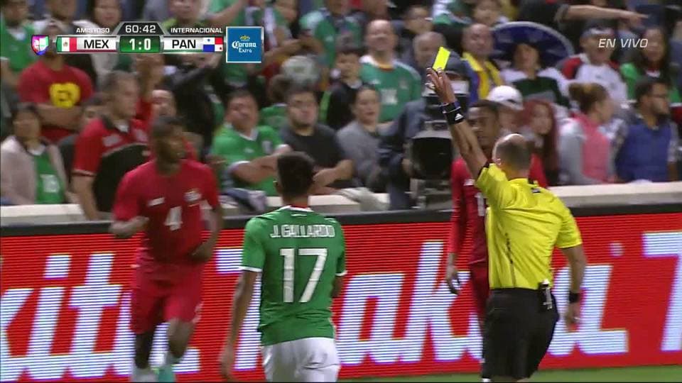 Tarjeta amarilla. El árbitro amonesta a Jesús Daniel Gallardo Vasconcelos de México