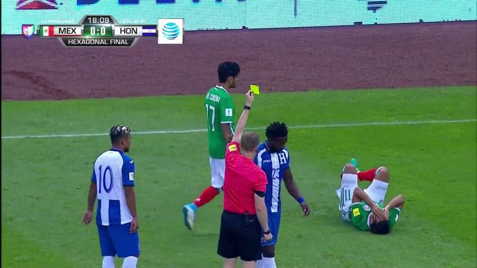 Tarjeta amarilla. El árbitro amonesta a Johnny Palacios de Honduras