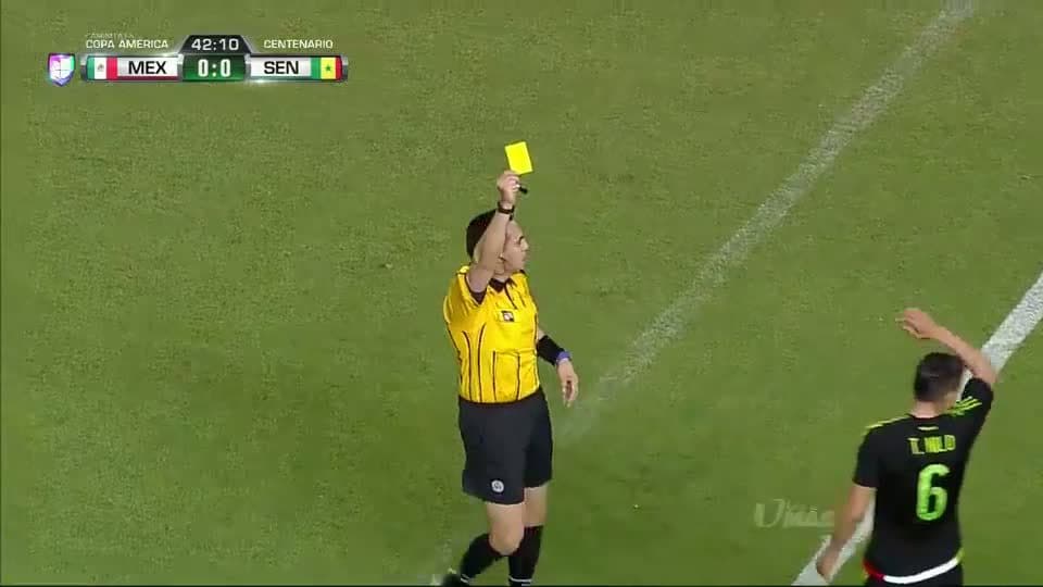 Tarjeta amarilla. El árbitro amonesta a Jorge Emmanuel Torres Nilo de México