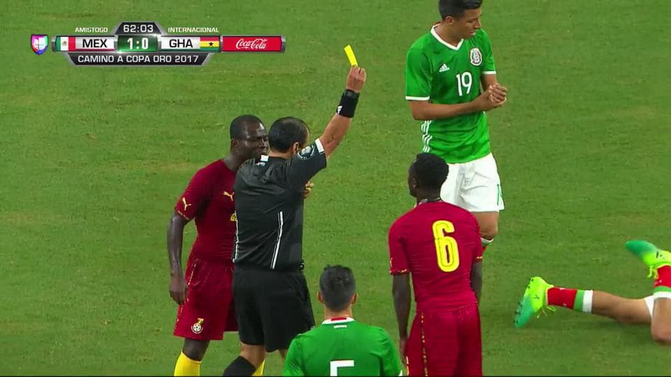 Tarjeta amarilla. El árbitro amonesta a Mohammed Abu de Ghana