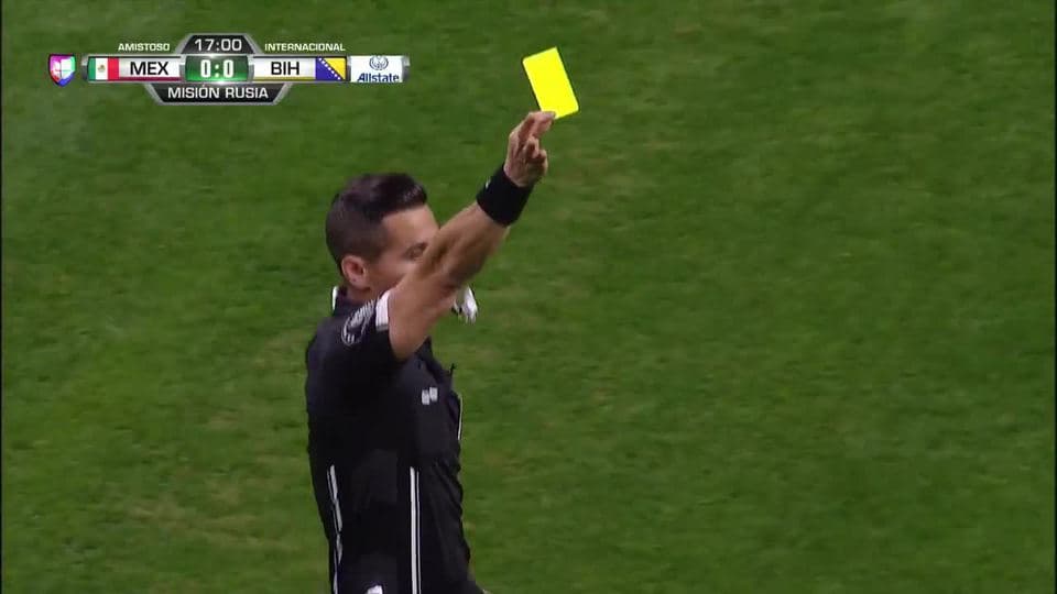 Tarjeta amarilla. El árbitro amonesta a Oswaldo Alanís de Mexico on January 31, 2018