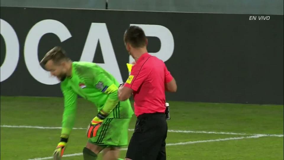 Tarjeta amarilla. El árbitro amonesta a Peter Jehle de Liechtenstein on November 12, 2016