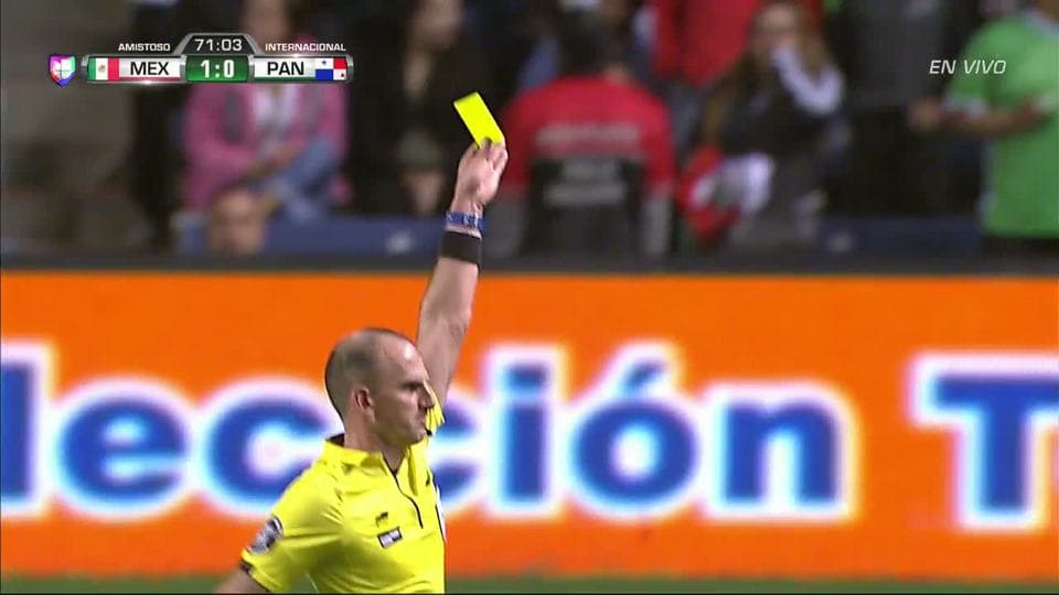 Tarjeta amarilla. El árbitro amonesta a Ronaldo Córdoba de Panamá