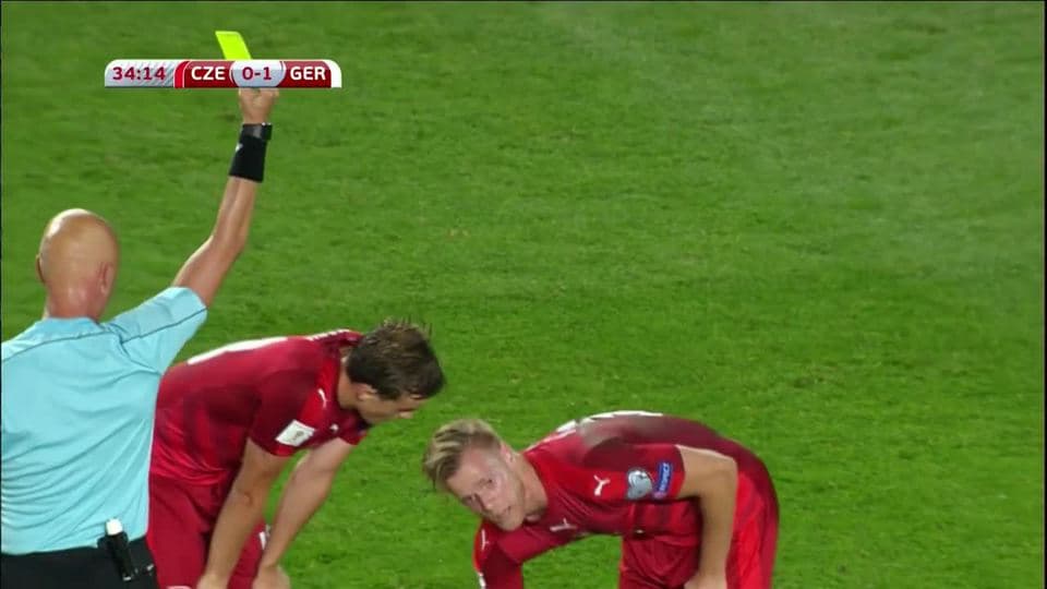Tarjeta amarilla. El árbitro amonesta a Tomas Kalas de Czech Republic on September 1, 2017