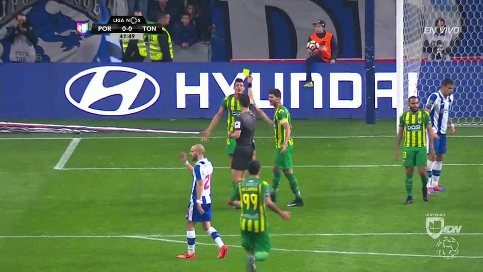 Tarjeta amarilla. El árbitro amonesta a Yordan Hernando Osorio Paredes de Tondela