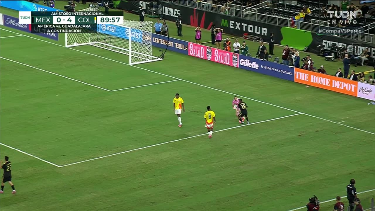 Tiro atajado. Germán Berterame (México) Disparo con la derecha desde el centro del área.