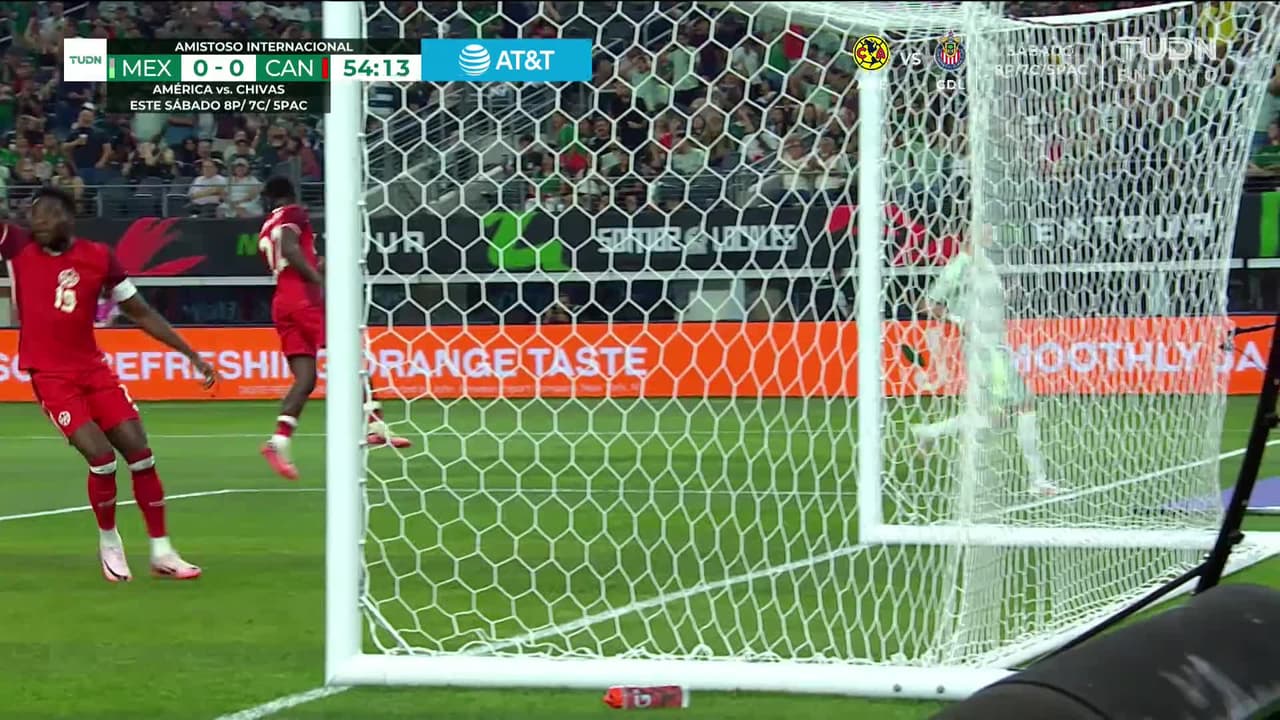 Tiro atajado raso al centro del arco. Santiago Giménez (México) zurdazo desde el lado izquierdo dentro del área. Asistencia de César Huerta.