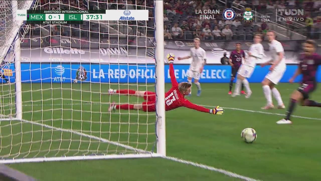 El atacante de México mandó un tiro potente que se fue por un lado del arco al minuto 37.