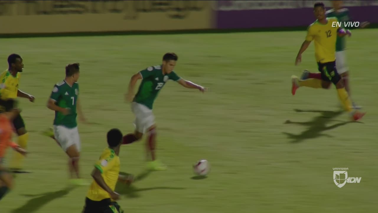 El disparo de Lozano llevaba dirección de gol y el arquero se hizo presente.