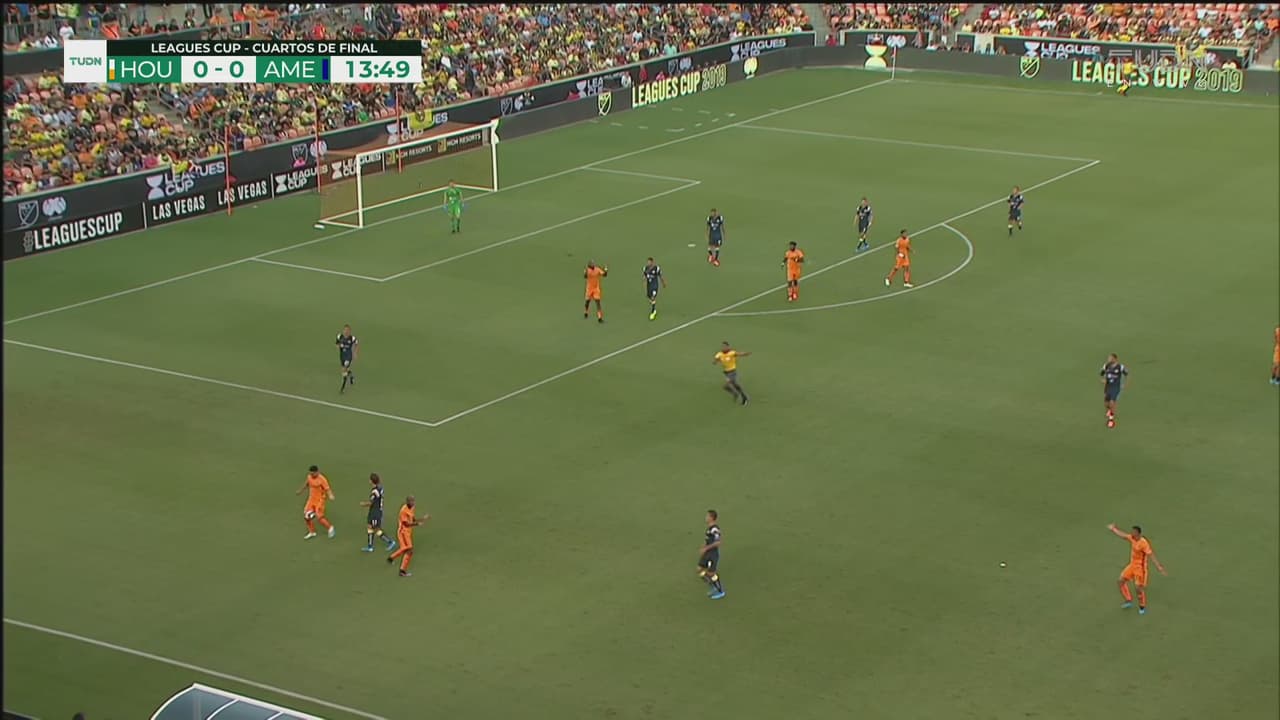El extremo beliceño fue a línea de fondo, le rompió la cintura al central azulcrema y metió una diagonal de la muerte que preocupó a la zaga americanista.
