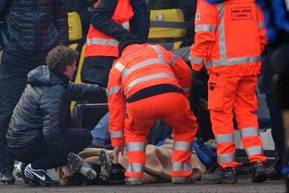 Getty ImagesLa mala noticia fue el golpe en la cabeza que recibió Chivu, quien tuvo que ser operado de emergencia.