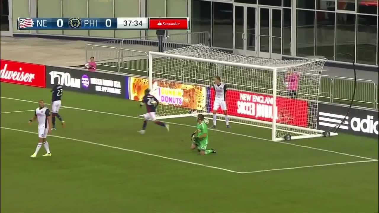 El delantero de Sierra Leona se estiró totalmente y ante la presión defensiva,marcó para adelantar al ‘Revolution’ sobre Philadelphia.