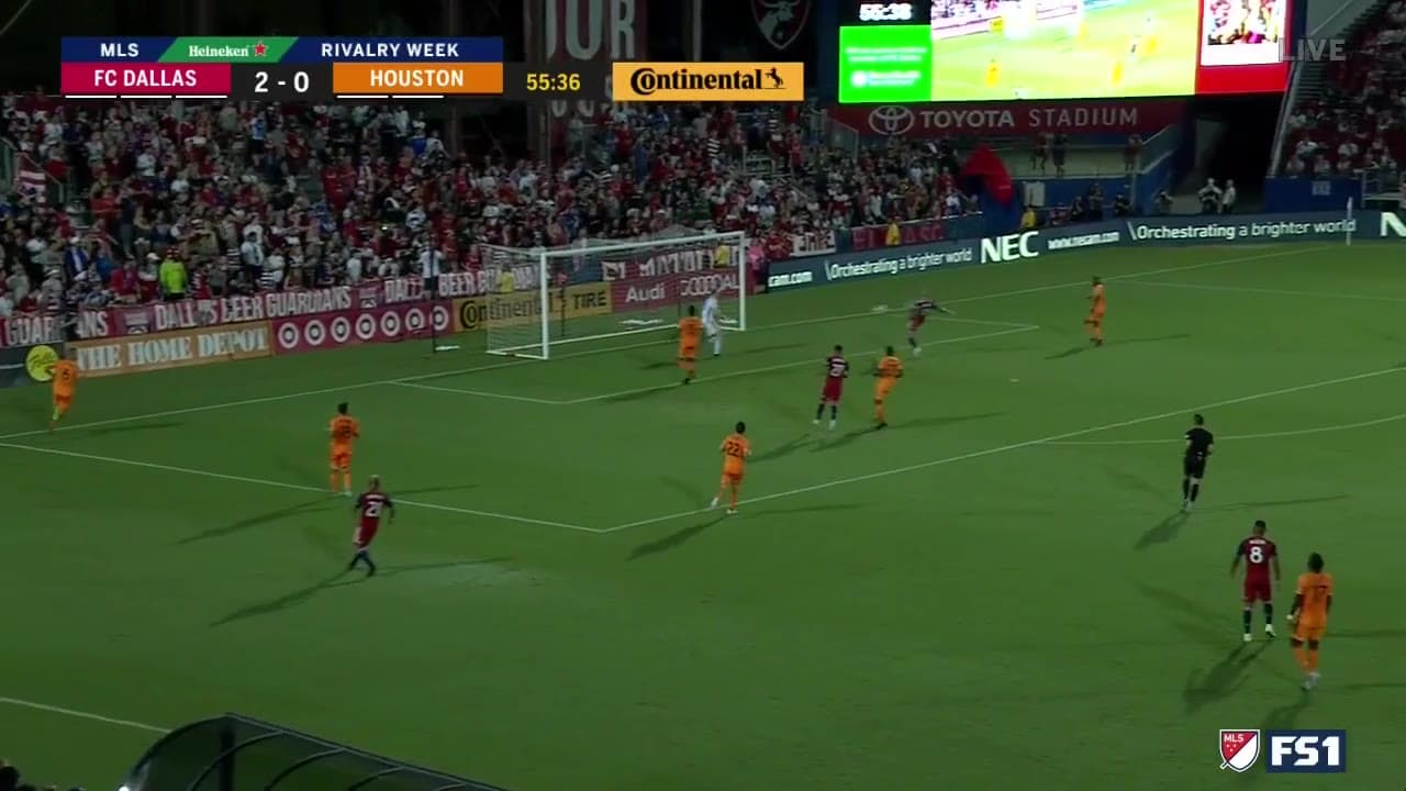 El delantero europeo conecta de primera un centro por la banda izquierda de Ryan Hollingshead, para el tercero sobre Houston Dynamo