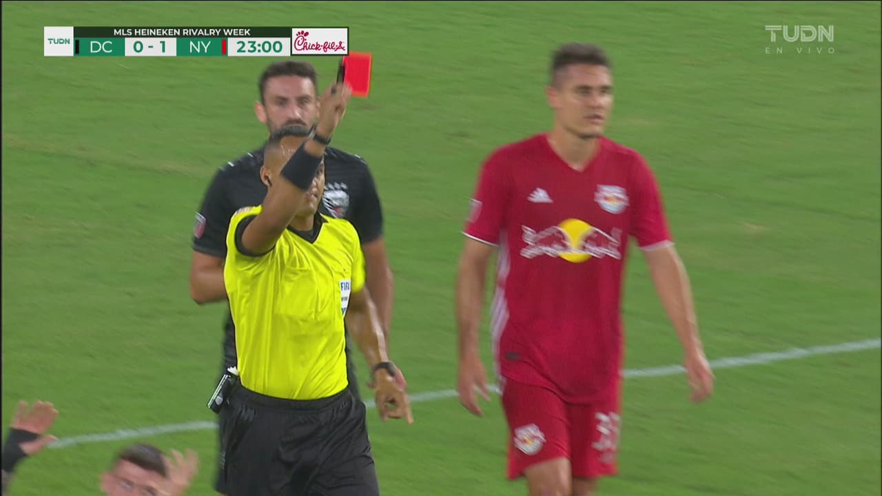 En el cobro de un tiro de esquina, el inglés se le fue encima al oponente, el árbitro no se había dado cuenta, pero el videoarbitraje terminó echándolo al 20’.