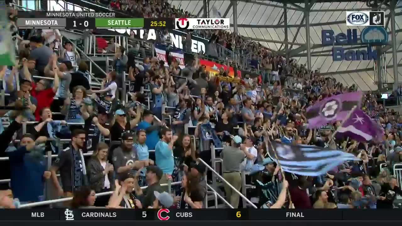 El volante de los Sounders le pegó con rencor al esférico y con tal efecto que hizo inútil la estirada del arquero de Minnesota United.